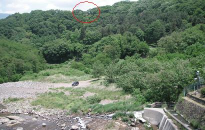 千曲川ベリから見た展望台。写真の赤マルをクリック!