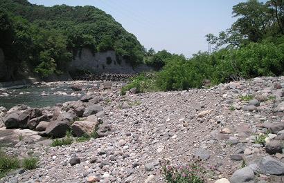 1975(S50)年頃に撮影した空中写真には、河原内に「遊子園」が見える。何の施設だったか不明だが、現在は廃墟?