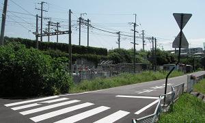 サイクリングロード上にある橋。その橋の先には、車道に転用した鉄道トンネルがあり、そのトンネルの先に、市町公園がある。通学路には不向きだが、歩道が確保されているので、散歩コースには良い。