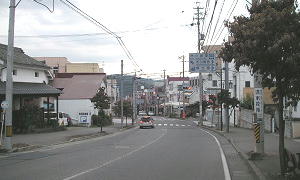 勝手口が北(#30)から、玄関は南、道路の山側が東、谷側は西と推測できる。この条件から、小諸駅〜小諸郵便局の道路上、三和一丁目にあったと推測。写真は、三和から西(小諸駅)を向いて撮影。