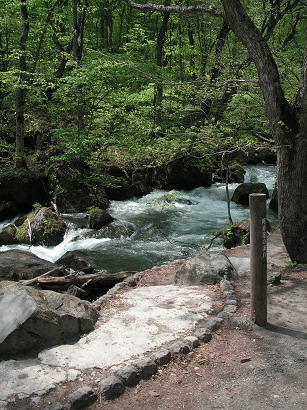 小諸駅裏から、児童遊園地沿いの車道を下る。発電所導水路が見えたら、その脇の歩道/階段を下る。急坂。